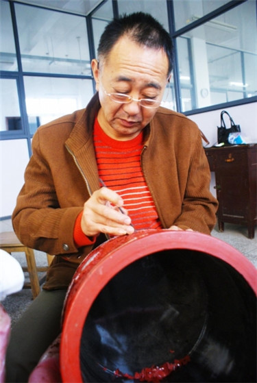 “过去一年,最值得骄傲的事情就是为献礼"十八大",我和徒弟们加班加点制作了一个红雕漆地屏《江山如此多娇》,这也是30多年来最大的一件红雕漆地屏作品。”张来喜说,完成《江山如此多娇》的那段时间里,他带着徒弟每天至少工作12个小时,只有大年三十、年初一和初二休息。