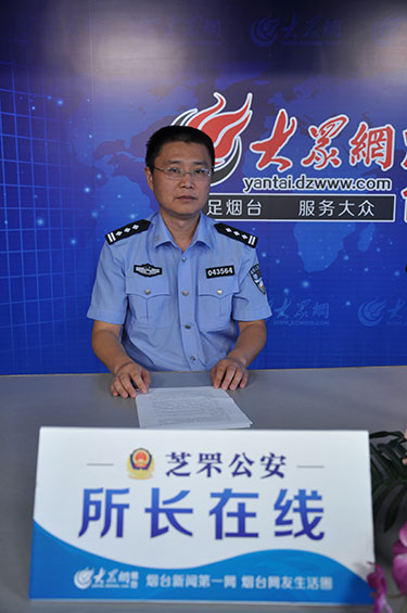 大众网烟台9月11日讯 (记者 王瑜) 他所在的派出所是芝罘公安分局建制最大、治安环境最复杂的城区派出所之一,针对辖区人员流动大、公共场所人员密集,带来扒窃、入室盗窃、黄赌毒等现象和案件高发的特点,他从规范执法、巡逻防范、严厉打击上下功夫,加大社会面治安管控。9月11日上午,烟台市公安局芝罘分局立交桥派出所所长王辉做客“所长在线”系列访谈第十期,就立交桥派出所开展社会面治安管控与网友进行互动交流,并回答网友提问。