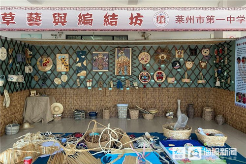 莱州市玉皇中学“手下有情 笔中生趣”书法草编工作坊——呈现了传统的书法文化与莱州传承已久的草编技艺。在展示上把二者完美结合,变废为宝,在继承的基础上发挥同学们想象力,使作品形式和风格更加精彩纷呈。