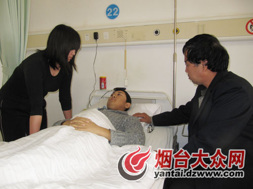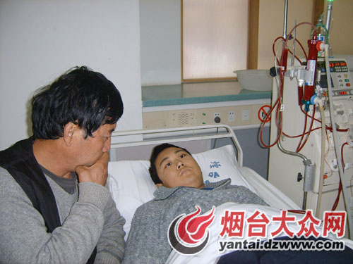 烟台大众网11月25日讯 (记者 胡昌辉) “我真得等不及了,现在时间就是儿子的生命啊!”今天上午,在烟台毓璜顶医院泌尿外科病区22床,面对烟台大众网记者,47岁的周忠田泣不成声,为了挽救患有尿毒症的22岁的儿子,这个坚强的汉子决定“捐肾救儿子”,可目前肾移植的手术费用却无法凑足。