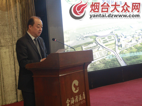 大众网烟台4月24日讯 (记者 王遥驰) 24日上午,中国北方区域航空市场战略联盟第十二届航班洽谈会在烟台金海湾大酒店召开,作为本次洽谈会的东道主,烟台国际机场集团公司董事长修维东在欢迎仪式上致辞。