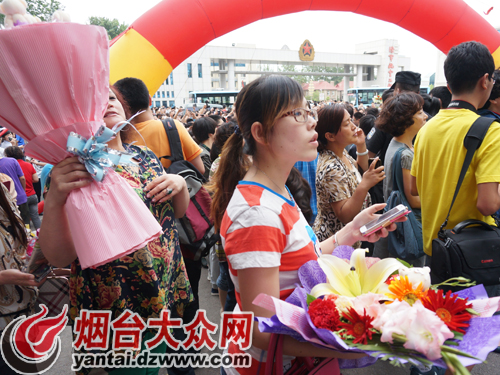 2014年6月7日、8日,历时两天的高考圆满结束,烟台3.6万余考生开启人生新旅程。8日17时,最后一门考试结束,考生走出考场,许多老师、家长、亲友在考场外等候,以鲜花、拥抱等方式迎接考生,更有许多家长用相机、手机留下考生这人生重要时刻的影响资料。