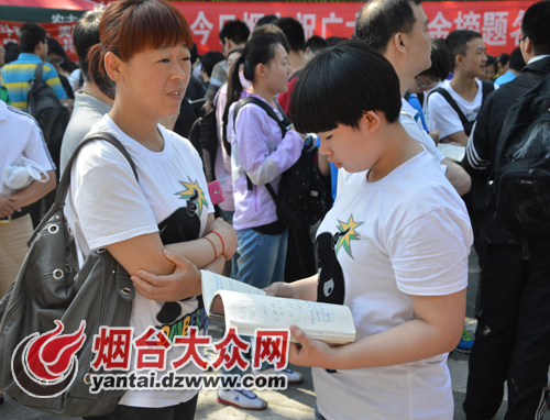 大众网烟台6月8日讯 (记者 王瑜 实习生 牟玺陆) 虽然经历了高考首日的适应,高考第二天对大多数考生来说,仍然是充满许多的未知和考验。一同陪考的家长更是不敢有丝毫的松懈,始终在考点外为自己的孩子加油鼓劲。