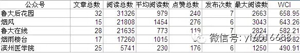 9、烟台高校类微信排行