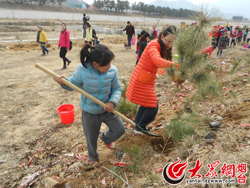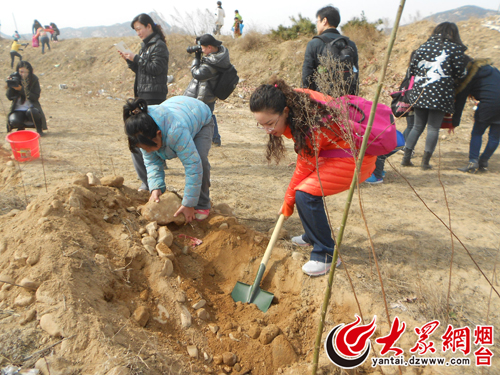 大众网烟台3月14日讯 (通讯员 隋天全 记者 曹平) 为迎接第37个中国植树节,3月14日,大众网烟台频道携手农行烟台市分行再度开展“践行蓝天责任 共建绿色烟台”万名网友植树活动。来自烟台华美医疗美容的志愿者积极参与植树活动,用实际行动践行绿色公益。