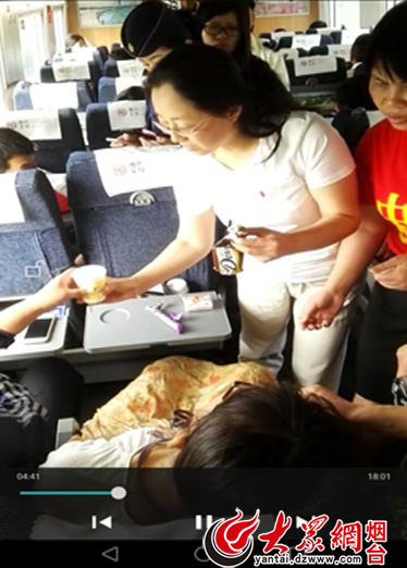 烟台山医院急诊科主任杨海燕让生病乘客服下巧克力(网友滕先生供图)