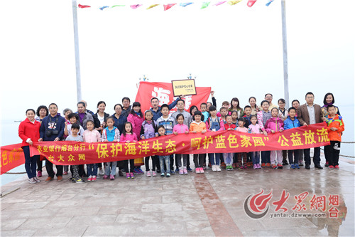 大众网烟台10月16日讯 (记者 邢晨 特约摄影 孙金忠) “小鱼特别可爱,我们应该好好保护它!”陈绍睿小朋友看着自己亲手放生的小鱼儿游进大海兴奋地说道。10月16日上午,由共青团烟台市委、烟台大众网、中国农业银行烟台分行联合主办的“保护海洋生态 呵护蓝色家园”公益放流活动,在黄海游乐城栈桥举行。19名海燕小记者和父母们,亲手将千余尾小鱼苗放归大海,用实际行动为保护蓝色海洋贡献力量。