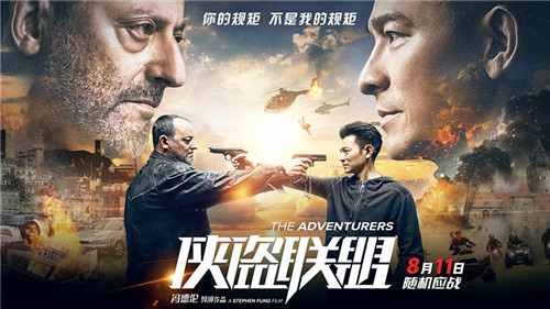8月11日上映的影片《侠盗联盟》由刘德华、舒淇、张静初、杨祐宁及让·雷诺领衔主演的动作冒险大片。刘德华饰演的“帅盗”张丹持枪打头阵,舒淇饰演的“美贼”叶红身跨机车酷炫潇洒,杨祐宁饰演的“超级骇客”陈小宝单手举起重机枪,三人全副武装准备迎战,让·雷诺饰演的警察皮埃尔和张静初扮演的Amber,组成的追捕联盟隐隐透露两方对阵之势,而曾志伟饰演的金刚则成为片中最神秘的大佬,他与三位“潮盗”之间的关系紧密牵连着剧情走向,让电影一波三折。
