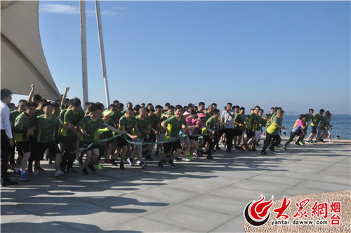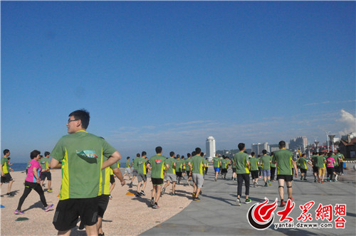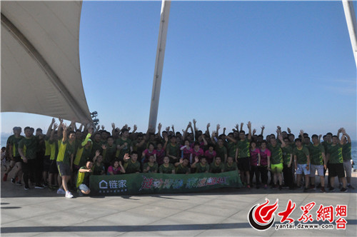 大众网烟台8月8日讯 (通讯员 王红 记者 于飞) 8月8日,又到全民健身日,为了呼吁市民走向运动场,走进健身行列,引领健康、文明、快乐的生活方式,烟台链家房地产经纪有限公司组织百余名公司精英组成“深绿跑团”,在滨海路上一路挥洒汗水与热情,跑出健康,跑出快乐。