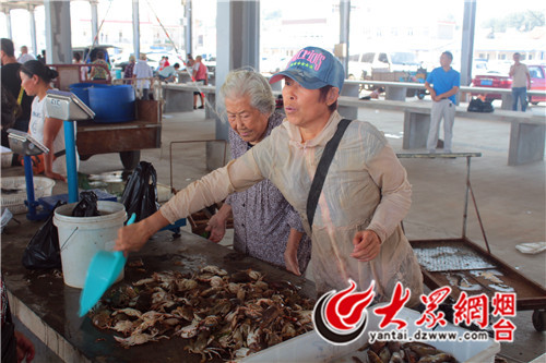 回来的船只增多,前来东口码头和抱港渔市购买海鲜的市民也越来越多了。市民张先生专程从市里开车买对虾,可问了好几只船,都没有捞到,好容易问到几个,价格也都特别高,“6只,个头还小,卖我80块钱,不便宜啊。”张先生说,家里人好这口,他每年都会在开海的时候到码头买虾,他说再等等,看大船上有没有卖的。76岁的王大妈也和老姐妹们一起结伴从莱山区坐公交车赶到东口,转了大半圈,最后挑了1块钱一斤的小杂鱼,“这个是真便宜,不买螃蟹,就这小鱼就挺好吃的。”