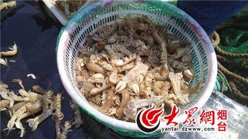 记者采访获悉,小船们捕获最多的就是爬虾、八带蛸、小螃蟹,渔民们介绍说,东口海域主要盛产的就是爬虾了。随着停靠的船只越来越多,商贩们收购的价格也越来越低,从最初的15元一斤到12元一斤再到22元两斤,到下午2点半左右的时候,鲜活的爬虾已经降到了10元一斤了,“我们也收不了多少,今天就收两三百斤,收够了就停了,等明天才再来收。”一位姓刘的商贩说。