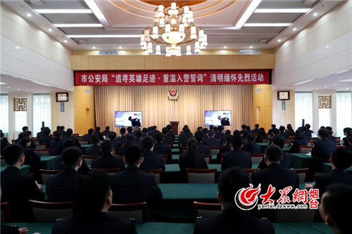 大众网烟台4月4日讯 (通讯员 贺延潇 张洁 记者 王瑜) 清明节来临之际,为纪念公安英烈,缅怀牺牲战友,弘扬奉献精神,4月4日上午,烟台市公安局开展了“追寻英雄足迹·重温入警誓词”主题纪念活动,表达对已逝英烈的深切追思。