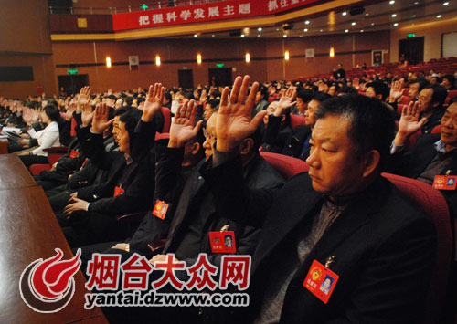 1月12日上午,烟台市政协十二届二次会议在烟台国际博览中心会议中心礼堂胜利闭幕。 见习记者 孙丽 摄影报道