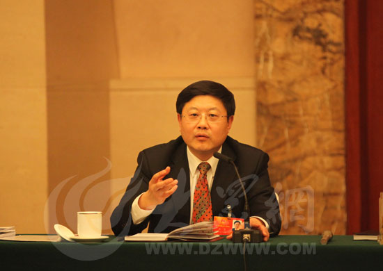 十二届全国人大代表、烟台市委副书记、市长王良回答大众网网友提出的问题。(特派记者 赫洋 摄)