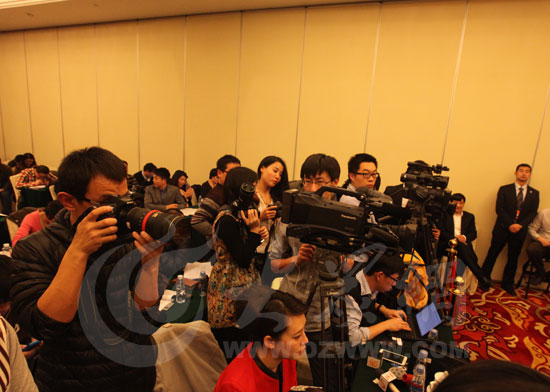 十二届全国人大一次会议山东代表团开放日吸引了众多媒体记者。(大众网特派记者赫洋 摄)