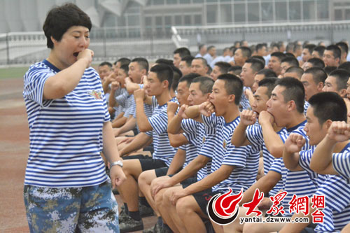 而要唱出抗战精神来,光把声音练好了还不行,同时表情也得到位。”经过一段时间时间的系统训练,队员们的演唱水平突飞猛进,然而他们一副副僵硬的表情,常常令教员们头疼不已。“在一次餐厅就餐时,也忘了是哪位教员了发现咬苹果的口型与合唱口型极为相似,还能很好地解决队员们高音音调不足、口腔腔道不通的问题。于是,咬苹果变成了大家竞相效仿的口型训练法。”随行的航院宣传处干事岳涛告诉大众网记者,受到啃苹果的启发,又开始往口里吞拳头,锻炼打开自己的口腔。