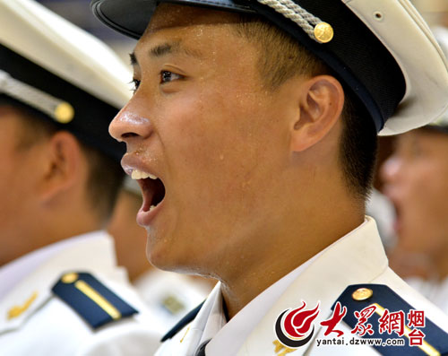 大众网烟台8月30日讯(记者 钟建 通讯员 岳涛)9月3日,纪念抗日战争暨世界反法西斯战争胜利70周年大阅兵将在天安门广场举行。千人将在纪念大会上演唱抗战歌曲,在我国阅兵史上尚属首次。在这千人合唱团中,有100名来自烟台海军航空学院的学员,他们从7月中旬便奔赴北京,在不到两个月的时间里经历着从“理工男”到“歌唱家”的转变。