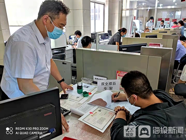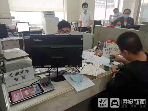 今年以来,招远市行政审批服务局大力推进“企业开办+政银合作”工作,在银行设立“双全双百”服务专窗,通过融合政务服务部门和银行金融机构在服务体系、物理网点、终端渠道等方面的优势,构建“政务服务+互联网+金融服务”的政务服务新业态,实现银行网点与政务大厅“双向赋能”,全力为群众打造“就近办、马上办、智能办”的政务服务新体验。当企业办事人员在银行网点提出企业开办申请后,银行代办人员会为其提供全程免费帮办代办服务,通过山东省企业开办“一窗通”网上服务平台提交申请,资料经由行政审批服务局工作人员远程审核确认后,即可现场完成企业开办登记注册及证照打印,电子证照同步生成;30分钟完成公章免费刻制并送达银行网点,银行开户一站式服务1小时办结,并免费提供快递邮寄服务;同时推广电子营业执照在开户环节的应用,实现开户环节纸质营业执照“免携带”、纸质申请书“免填写”、柜员营业执照信息“免录入”的“三免”服务,提升了企业账户管理的安全性和开户的便捷性,真正实现“数据多跑路、群众少跑腿、就近办手续”的工作目标。