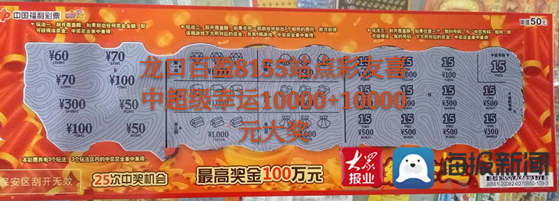 中奖者小王刚从外地回来,闲暇之余便会来小区门口的彩站购买几张刮刮乐。8日下午小王来到彩站,近期火爆的“超级幸运”派奖活动吸引了小王的眼球,小王购买了3张“超级幸运”彩票,刮完后只中得了一注小奖,此时销售员建议再买几张试试手气,没准大奖还在后头。小王听从意见,又购买了几张的“超级幸运”即开型彩票,在刮到第10张左右时,小王便刮到了一张“全中”彩票,所有奖金一加共计中得10000元奖金,同时根据派奖活动规则,小王将额外获赠10000元的派奖奖金,共计中得了奖金20000元。