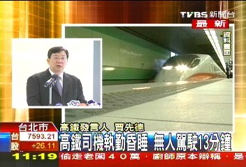 台湾高铁司机昏睡 致列车13分钟无人驾驶