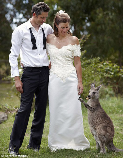 澳大利亚情侣 请袋鼠在婚礼上当“伴娘”