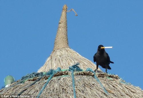 乌鸦“享受”香烟。