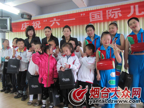6月1日上午9时,烟台丽晶时装广场员工代表带着节日的礼物,来到芝罘区辅读学校看望了这里的孩子们,并将精心准备的学习用品和玩具送到孩子手中。看着前来给自己送节日礼物的漂亮姐姐们,学生们也异常兴奋,载歌载舞表达节日的喜悦和感激之情。