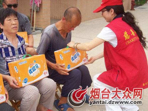 烟台大众网8月8日讯 (记者 胡昌辉) 8月7日,在一位好心人资助下,烟台大众网·大众帮帮团和义工们来到了龙口七甲镇长寿苑,为65名残疾老人送去了物品和爱心款,价值15575元。