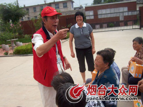 此次参与爱心活动的义工有烟台市五星级义工许振珊姚俊母子、夫妻义工史建军于少丽和73岁的老义工刘乙。由于路途遥远,当义工们赶到龙口七甲敬老院时,大多数老人都开始午休了。义工们为部分残疾老人发放了物品和爱心款,其中73岁的刘乙还用顺口溜的方式为老人们介绍了烟台市慈善义工的发展情况,赢得了老人们阵阵的掌声。