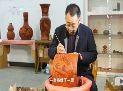 央视采访拍摄扬州漆器剔红工艺