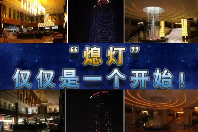 晚8:30,关闭酒店公共区域照明,关闭楼体照明,邀请在店宾客到大堂共享“熄灯一小时”。