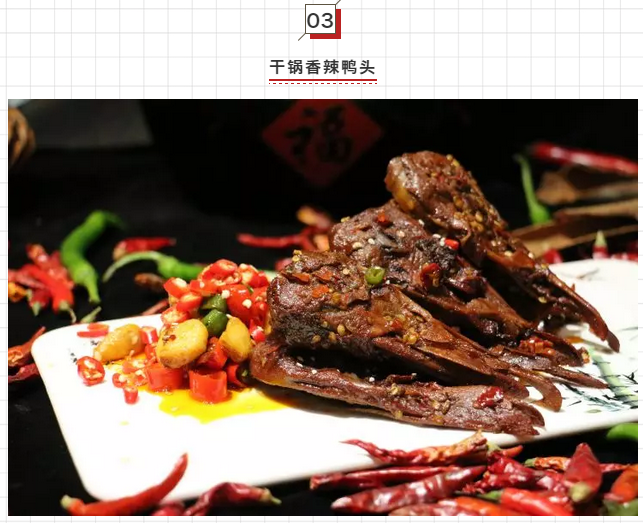 干锅香辣鸭头选用优质湖鸭,提前秘料腌渍入味,辅配特有香辣配料,川菜风味醇厚,入口香辣脆绵,回味长久,是佐餐、饮酒、团聚首选理想餐饮新宠。
