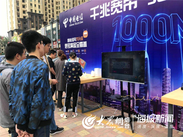 5月17日上午,中国电信烟台分公司(以下简称“烟台电信”)在芝罘区万达广场步行街开展千兆宽带体验活动,现场演示电信千兆宽带测速,讲解智能组网服务,并邀请现场观众体验智能产品,让更多用户近距离体验千兆宽带及智能家居系统为生活带来的便利。
