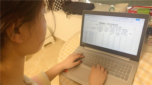 应对疫情,英语本1704班党员刘婕从服务身边同学做起,做好班级的各类防疫统计工作,同时提前制定工作、学习计划,不忘学生本分。“身为班长我必须保持与同学们的密切联系,掌握同学们的健康信息,让班里的同学感到有依靠、有力量。同学们一有什么问题我都是秒回,就是担心他们的健康。所以我必须提前计划,保持学习、工作两不误。”