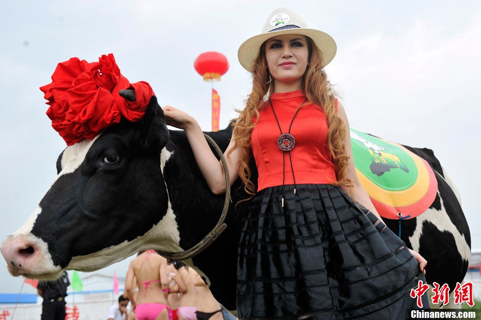 8月18日,山西省朔州市山阴县联合美国奥兰治华威县举办首届“奶牛选美大赛”,通过奶牛的产奶质量、外貌、家族血统选出首届“奶牛小姐”冠军,众多着比基尼的“牛模特”当场助阵。(8月19日《山西晚报》)