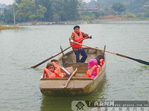 让覃老师欣慰的是,孩子们都很懂事,家长也经常向他表示感谢。有一次摆渡学生回家时,一个孩子说,不能让覃老师白白辛苦,老师每天摆渡他4次,每次按一角钱算,几年下来也有不少钱,他要爸爸付钱给老师。覃老师笑笑说:“你们有这份心就很好了,老师不要钱,只要你们学习好。以后你们长大了,也要有爱心,多奉献社会。”