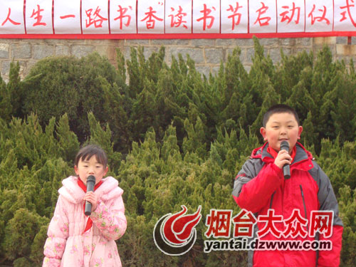 大众网烟台3月20日讯 (通讯员 健华 新宇 记者 昌辉 实习生 慧慧) 为将学校打造成一个有书香氛围的校园,烟台市芝罘区新石路小学举办了首届家校读书节活动。3月19日,学校举行“幸福人生 一路书香”读书节启动仪式。