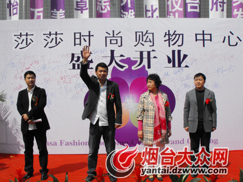 烟台大众网4月24日讯 (通讯员 马丽娟 记者 张雪松) 烟台时尚购物行业再添新军,4月24日上午,烟台莎莎时尚购物中心隆重开业,并且联合烟台市慈善总会举办“情系玉树——莎莎商场赈灾募捐义演”,莎莎购物中心88位时尚业主现场为玉树震区捐款,活动结束后将募捐善款通过市慈善总会送给灾区。