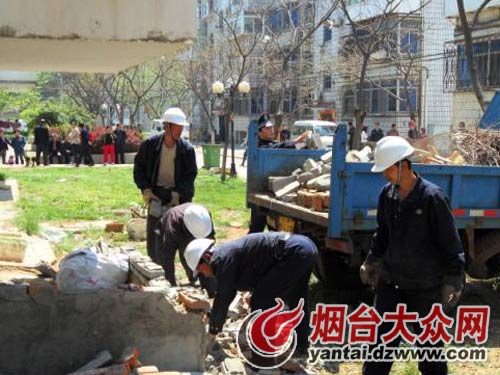 芝罘区芝罘岛社区计协整顿小区私搭乱建