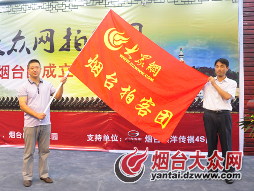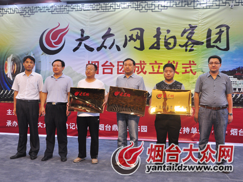 上午9时30分,成立仪式正式开始。山东大众信息产业公司总经理、大众网总经理助理陈月军为烟台拍客团授旗,随后,中共烟台市委宣传部网络文化办公室主任王洪青,山东大众信息产业公司总经理、大众网总经理助理陈月军,大众网互动评论部主任邢玉军分别为烟台鼎丰生态园、招远罗山国家森林公园、中国夼上艺术区授予“大众拍客团采风基地”牌匾,这三家也成为烟台首批大众拍客团采风基地。
