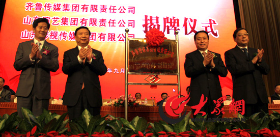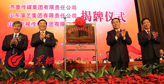 山东省委副书记、省长姜大明,省委常委、宣传部长孙守刚为山东影视传媒集团有限公司揭牌。