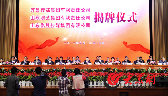 齐鲁传媒集团、山东演艺集团、山东影视传媒集团揭牌仪式现场。房贤刚 摄