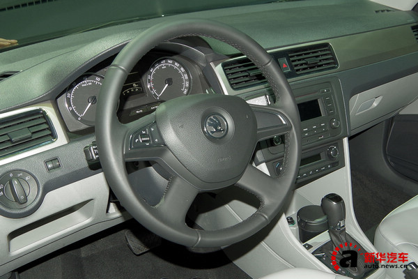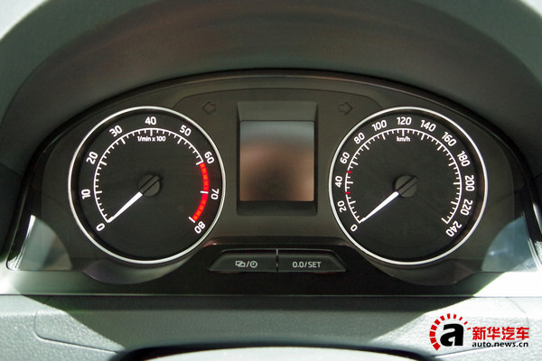 新车的仪表采用了白色背光,中央信息显示屏和斯柯达晶锐类似采用了绿色背光单色显示屏,可以显示车外温度,行驶里程、综合油耗等信息。