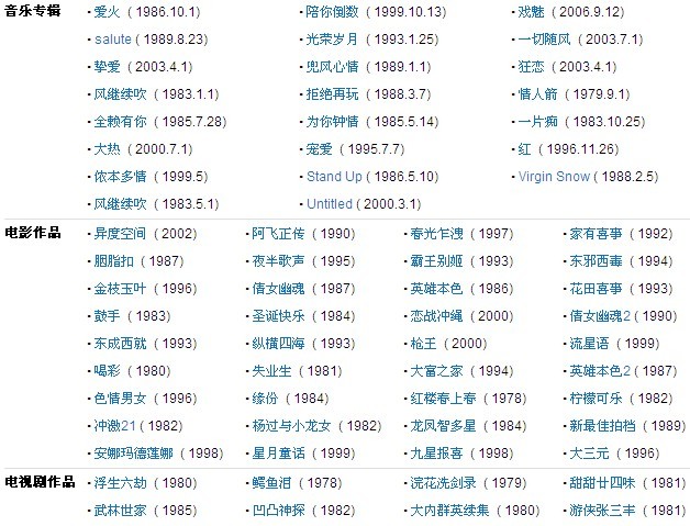 张国荣(1956年9月12日-2003年4月1日)生于香港,是一位在全球华人社会和亚洲地区具有影响力的著名歌手、演员和音乐人;大中华区乐坛和影坛巨星;演艺圈多栖发展最成功的代表之一。他通晓词曲创作,曾担任过MTV导演、唱片监制、电影编剧、电影监制。张国荣是香港乐坛的殿堂级歌手之一,曾获得香港乐坛最高荣誉金针奖;他是第一位享誉韩国乐坛的华人歌手,亦是华语唱片在韩国销量纪录保持者。他于1991年当选香港电影金像奖影帝;1993年主演的影片《霸王别姬》打破中国内地文艺片在美国的票房纪录,他亦凭此片蜚声国际影坛,获得日本影评人大奖最佳男主角奖以及中国电影表演艺术学会奖特别贡献奖。他曾受邀担任东京国际电影节和柏林国际电影节评委[1],2005年入选“中国电影百年百位优秀演员”,2010年当选美国CNN评出的“史上最伟大的二十五位亚洲演员”。
