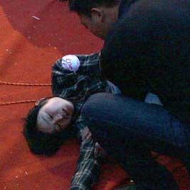 ▲18日,安徽合肥50多对青年情侣参加接吻大赛,有人因为体力不支当场晕倒(图)。最后,一对小情侣持续吻了2小时43分钟,获得了主办单位提供的价值5万元的1克拉钻戒。