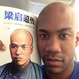 ▲图:只是偶尔翻翻书,居然一下子找到了他上辈子在中国的兄弟!昨天,北京男篮外援马布里在微博晒出与梁启超合影。网友:马布里,你太调皮了!