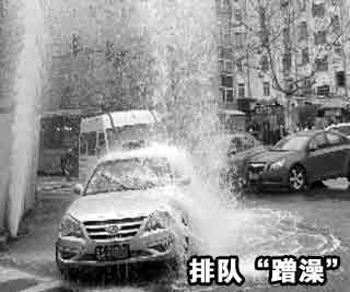 封面:南京一消防栓昨天中午被卡车撞断,喷出的水柱有3层楼高。10多分钟内,这里成了“天然”洗车场,有的车绕到水柱下,让水把车身冲个透;有的车索性停下来,任由水柱冲洗;还有车主甚至在后面排队“蹭澡”。一时交通陷入瘫痪。