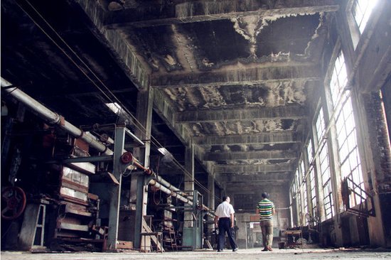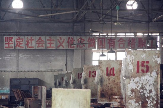 锈迹斑斑的铁门上着锁,车间的窗户残破不堪,角落里散放着几堆锯成小段的木块。代表企业生产能力的火柴连续机挂满了蜘蛛网,装盒机上还放着未完工的火柴,已满是灰尘。
