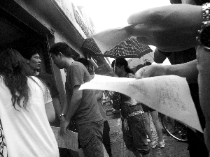 开考前考点外一复印店内,挤满了前来打印“小抄”的学生。