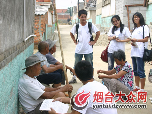 大众网烟台7月23日讯 (通讯员 李炳翰 记者 胡昌辉 实习生 曹平) 为深入了解第一书记,探寻农村发展新情况,烟台大学光电学院“兴·光”暑期社会实践团队开展“第一书记”走访活动,深入农村第一线。烟台牟平高陵镇黄家营村是实践队正式出发的第一站。